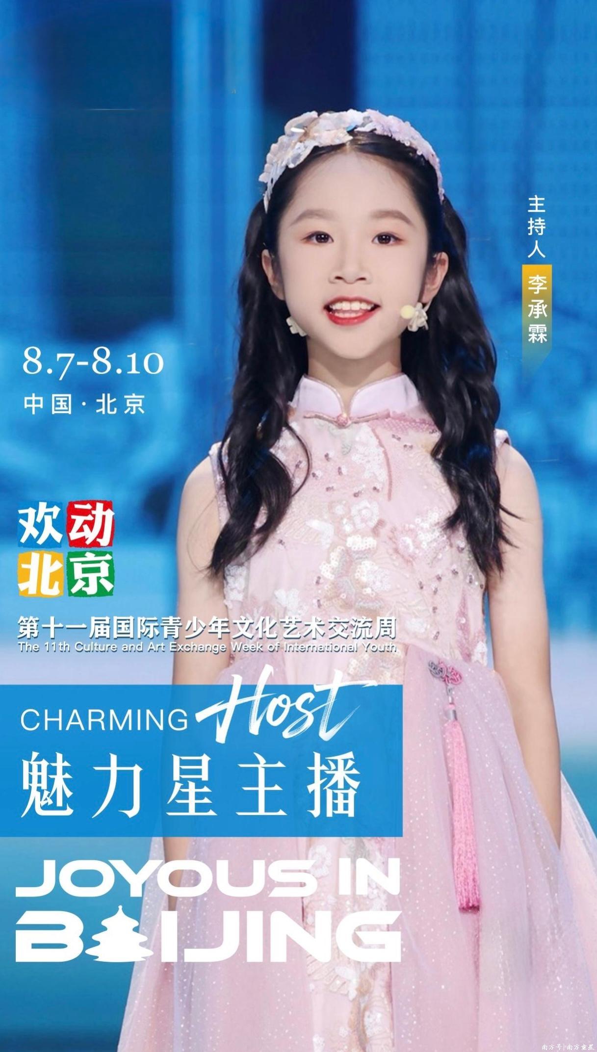 8月8日,北京未来剧院灯光璀璨,第十一届国际青少年文化艺术交流周盛大开幕。舞台中央,一位小主持人落落大方,和央视著名主持人鞠萍姐姐并肩主持。她,就是来自中山9岁的李承霖。